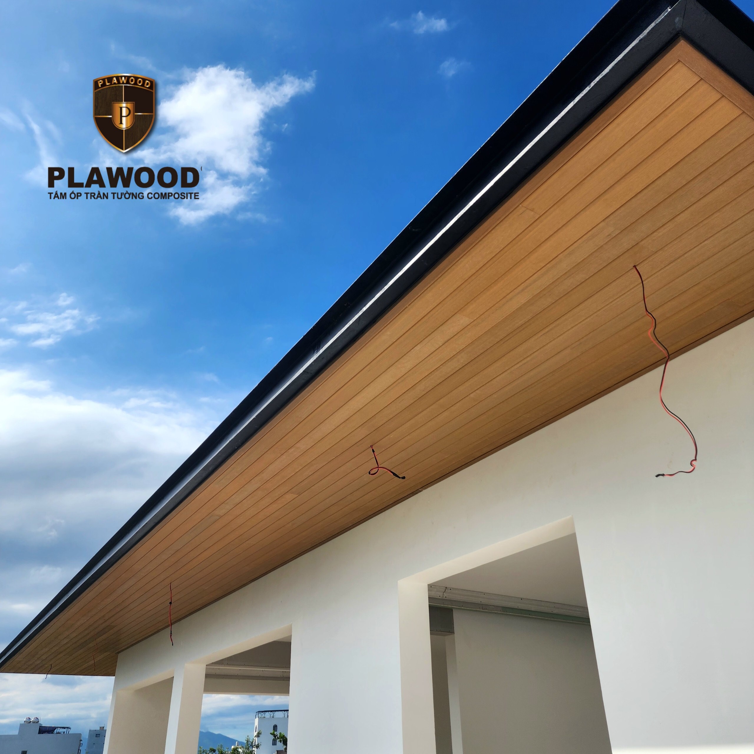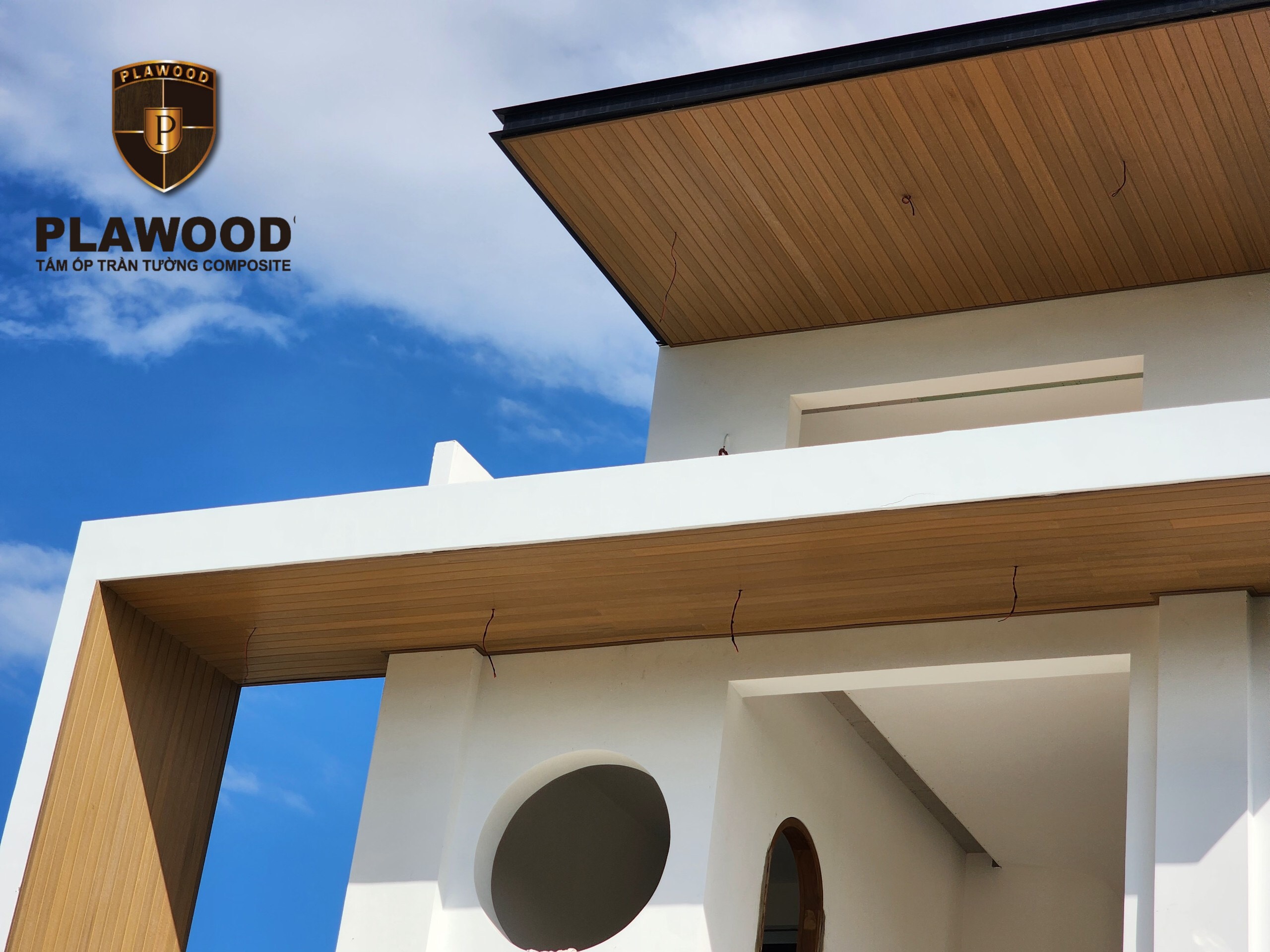 công trình biệt thự sử dụng tấm ốp Plawood mã W100 - Yellow Pear cho việc trang trí bề mặt ngoại thất và ốp trần mái hiên. Các tấm ốp được sản xuất theo công nghệ đùn phủ màu 2 lớp, với lớp phủ nhựa ASA chống ngả màu và nứt đâm. Bề mặt của tấm ốp còn có khả năng chống bám bẩn và bám mốc. Đặc biệt, tấm ốp Plawood có thời gian bền màu lâu dài, lên đến hàng chục năm.