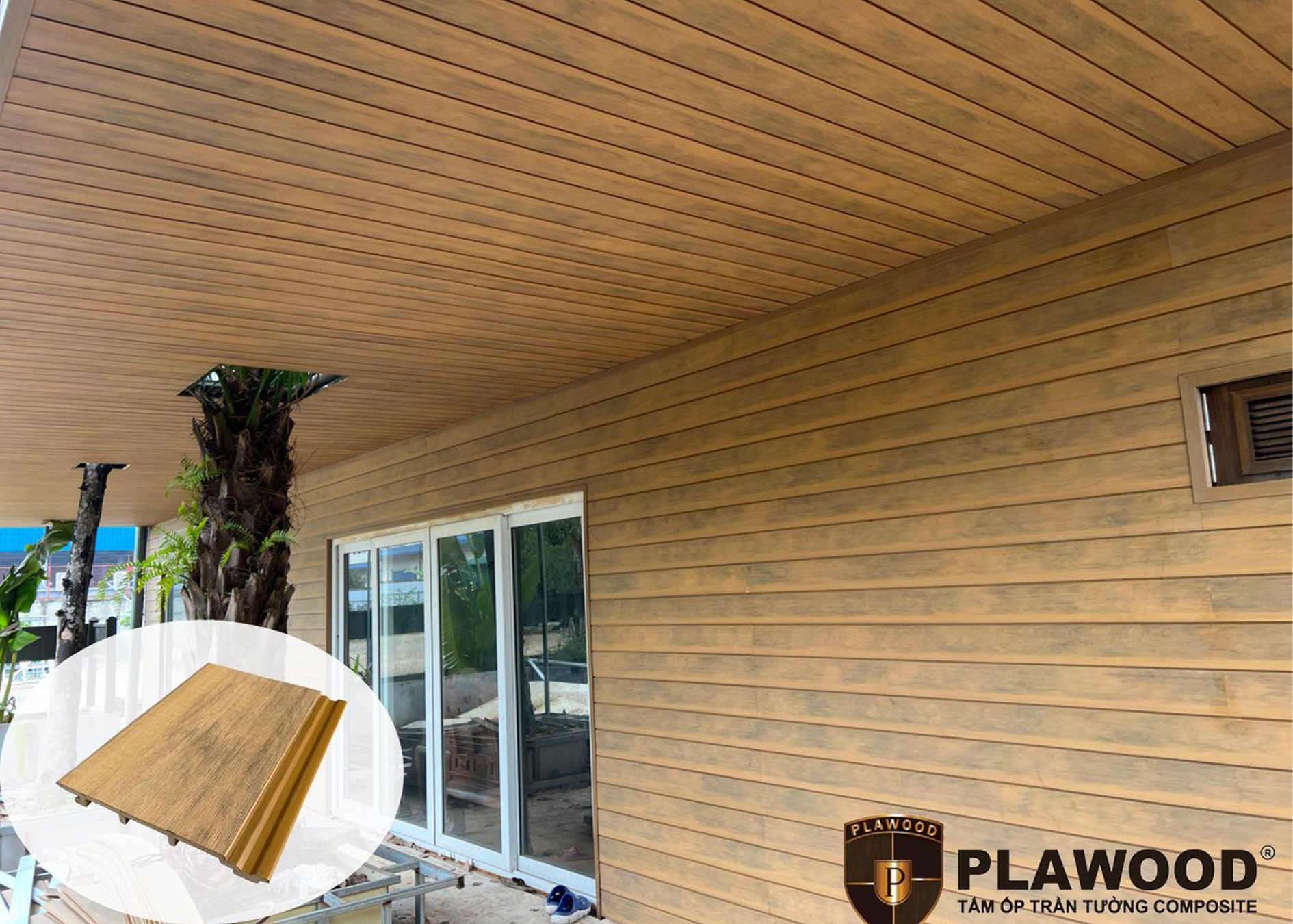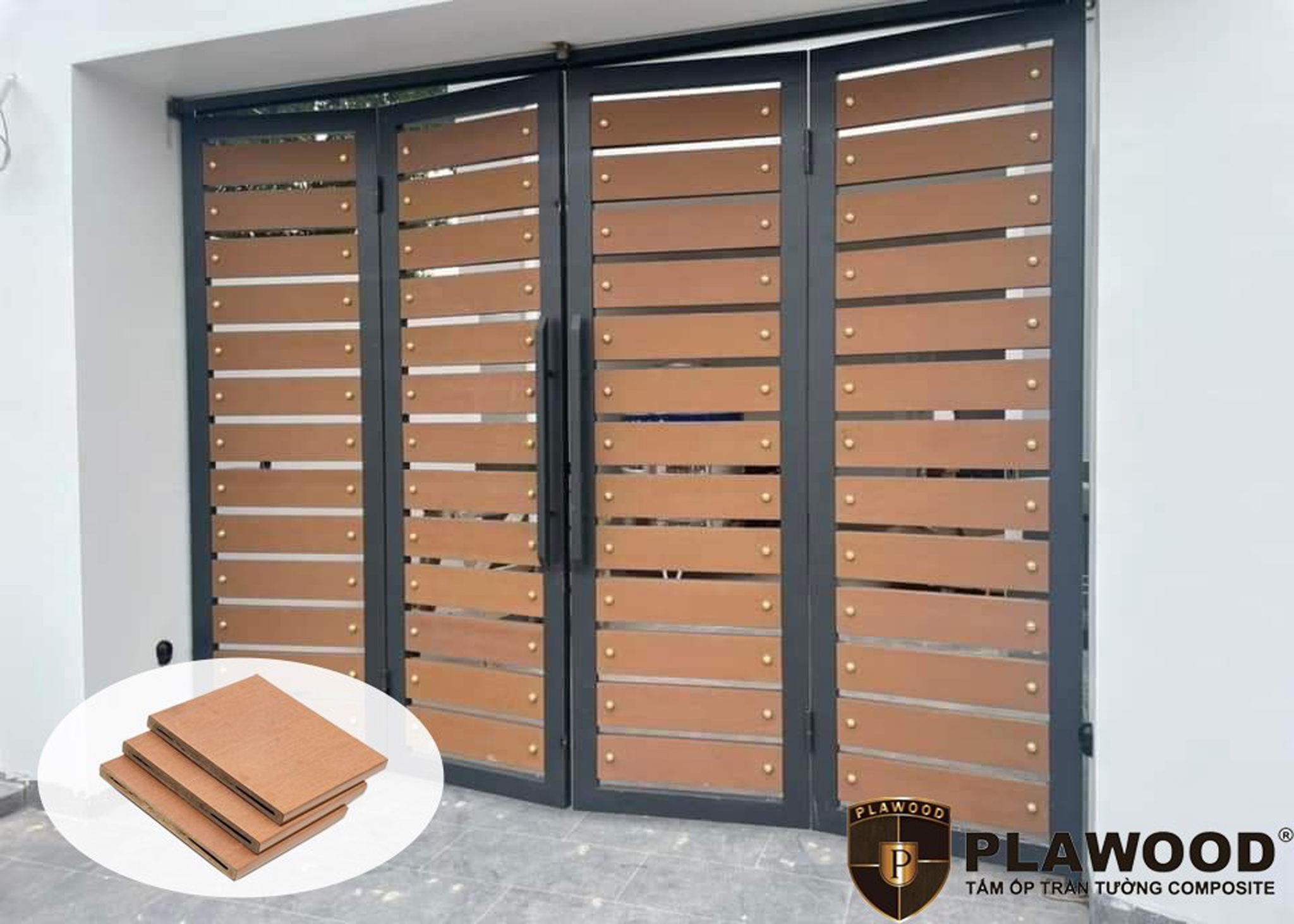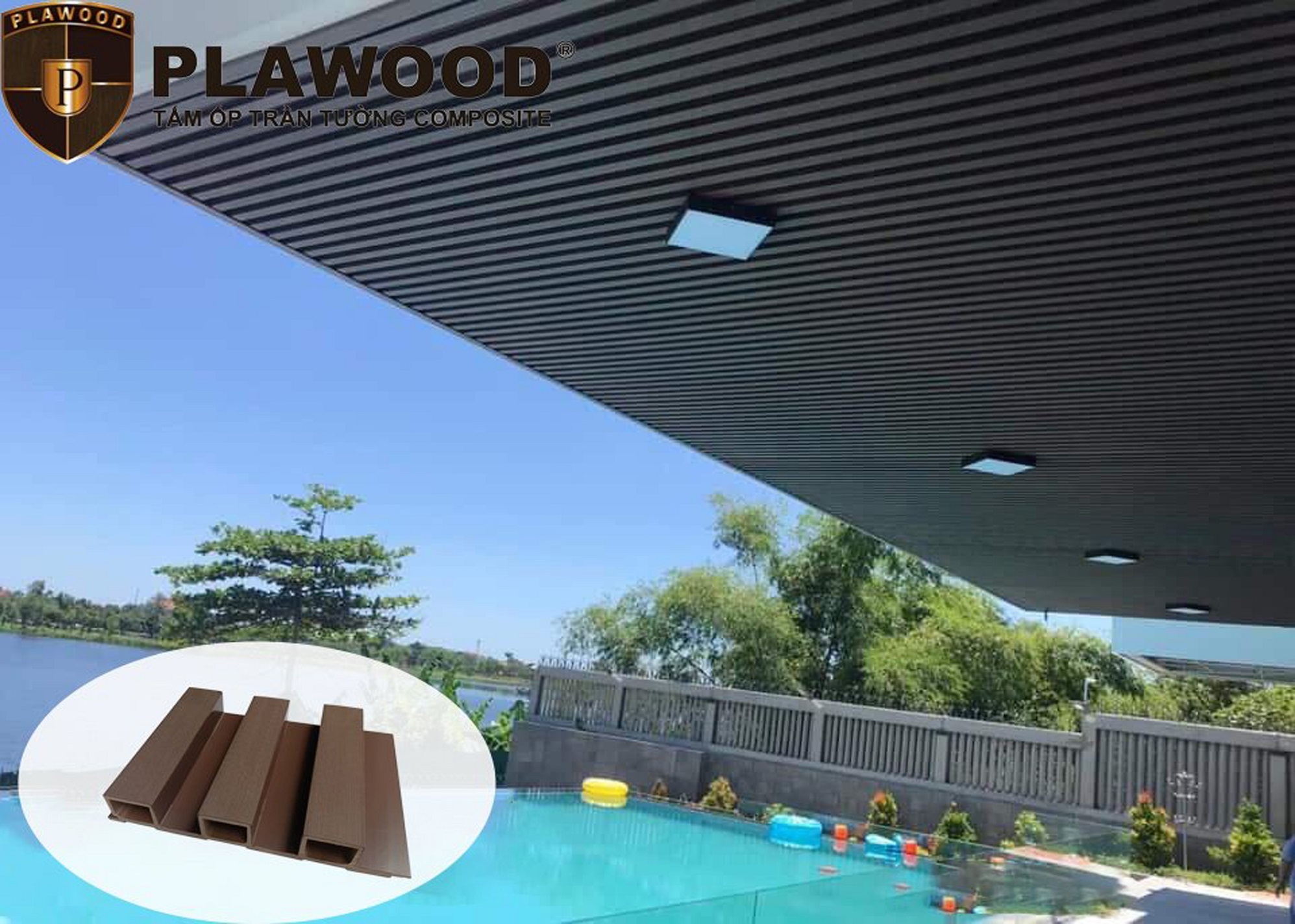 Tấm ốp tường; tấm ốp trần, cửa cổng, hàng rào, lan can, lam chắn nắng, chòi nghỉ, sàn bể bơi; sân vườn,....