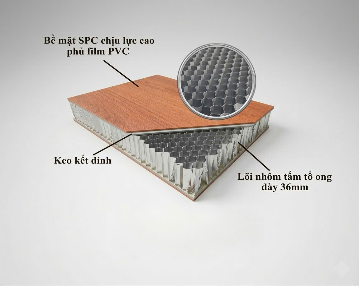 2. Kết cấu lõi nhôm tổ ong: "Nhẹ nhưng cực khỏe" (Dành cho cửa thông phòng)