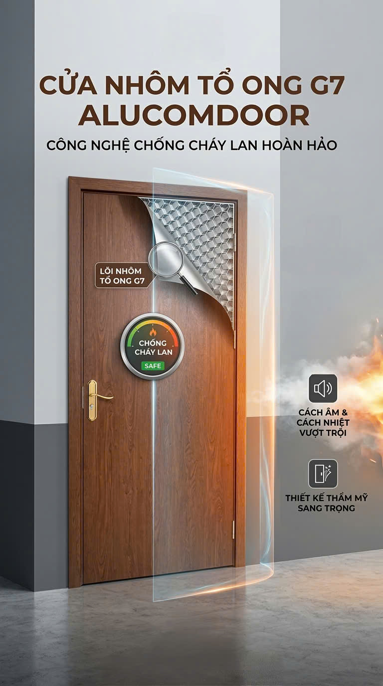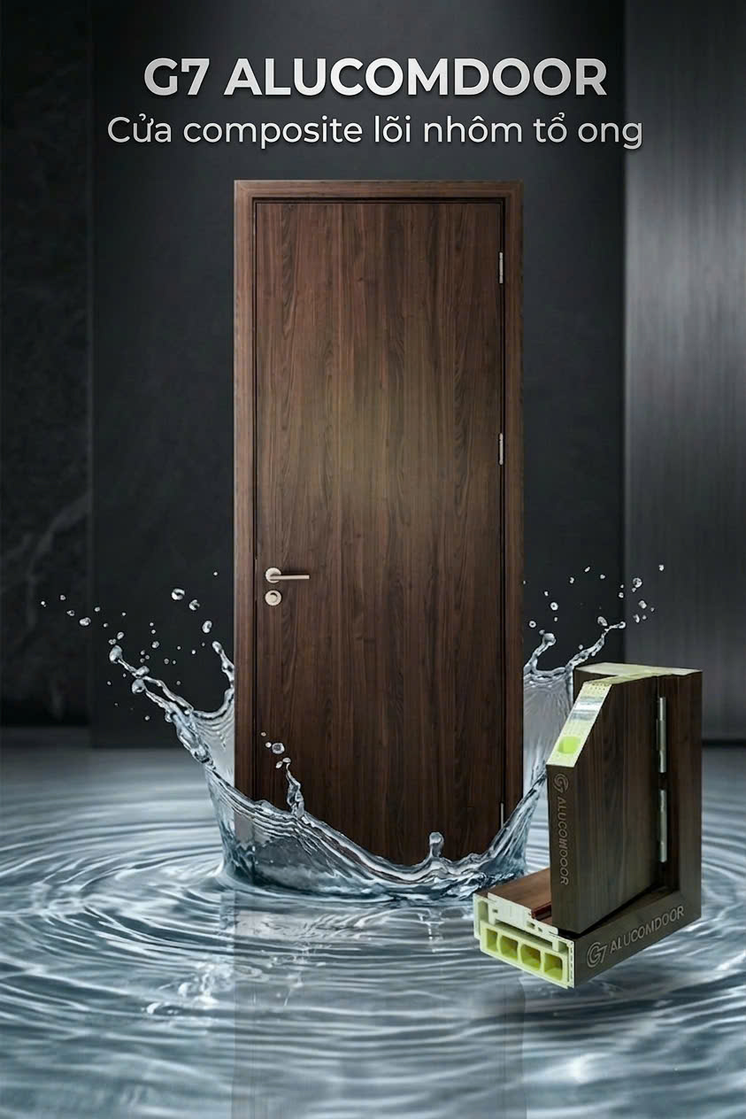 Dòng cửa G7 Alucom (Composite lõi nhôm tổ ong) hiện đang được đánh giá là "vua" của phân khúc cửa nội thất nhờ sự kết hợp đột phá giữa vật liệu Composite bền bỉ và kết cấu lõi nhôm tổ ong.